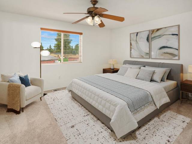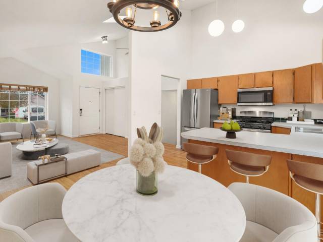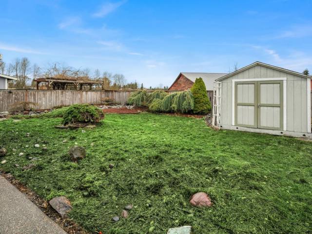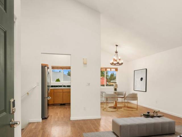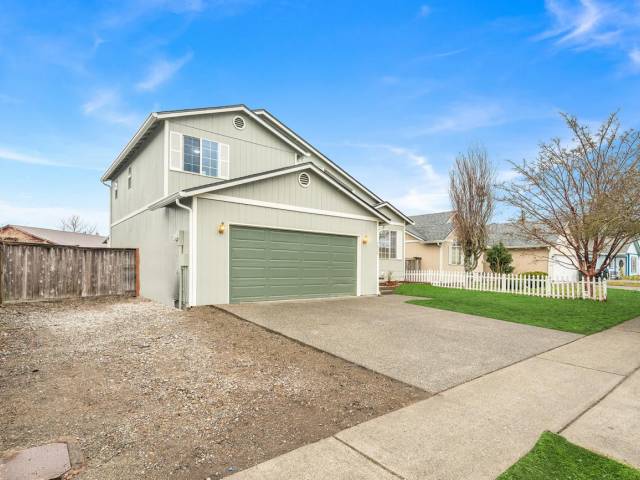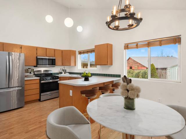 Discover your peaceful retreat in Yelm with breathtaking mountain views! This beautifully updated home offers a spacious, well-designed kitchen with eating space and a main living area featuring vaulted ceilings, skylights, and laminate flooring. The downstairs second living space is perfect for a playroom or additional living area. The garage is equipped with a workbench, den, heat, AC, and built-ins for a home office. Enjoy the outdoors with a securely fenced dog run or chicken area. This move-in ready home offers quality craftsmanship inside and out—don't miss out on this opportunity!